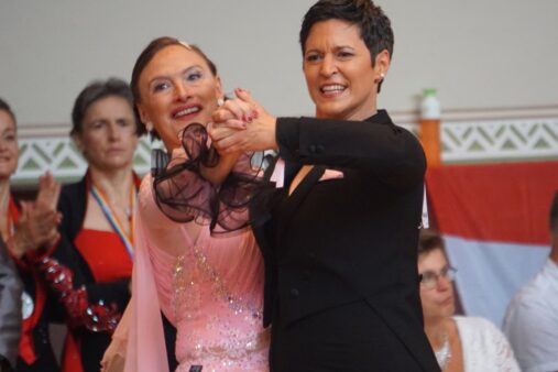 They dance the rumba, the tango, the quickstep. The couples at the beautiful Concertgebouw De Vereeniging at Nijmegen, the Netherlands, are smiling. Their moves are graceful and hopefully well judged, because they are in a dance competition. With same sex couples, which is unique for a dance event. It’s the Euro Games 2022.